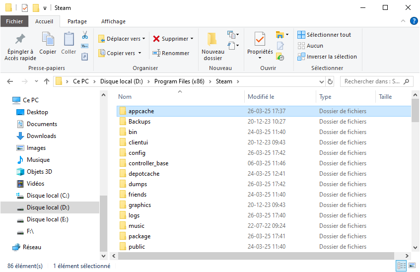 1. Fermez complètement Steam. Ouvrez l'Explorateur de fichiers et accédez à C:\Program Files (x86)\Steam\appcache.