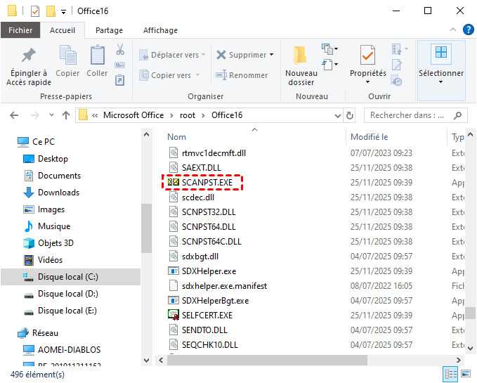 2. Recherchez le fichier Scanpst.exe dans ce dossier pour accéder à l’outil de réparation intégré.