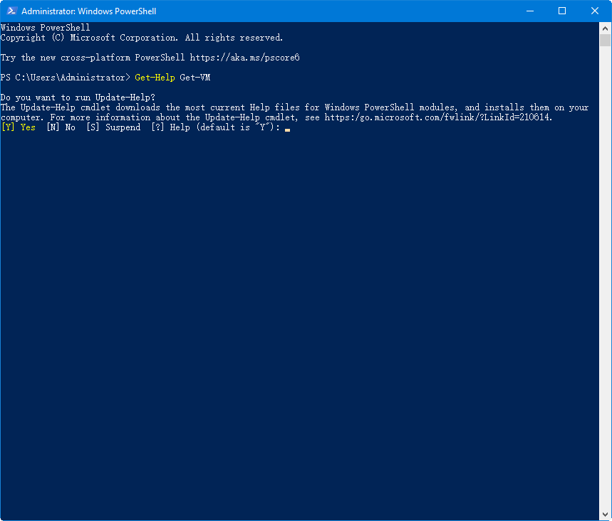 Remarque : Avant de commencer, vous devrez peut-être exécuter Update-Help pour installer les fichiers d’aide les plus récents pour les modules Windows PowerShell. Si vous ne l’avez pas mis à jour depuis un moment, vous serez invité à le faire lors de l’utilisation de Get-Help. Tapez Y et appuyez sur Entrée pour continuer, puis vous pourrez interroger de nouveau.