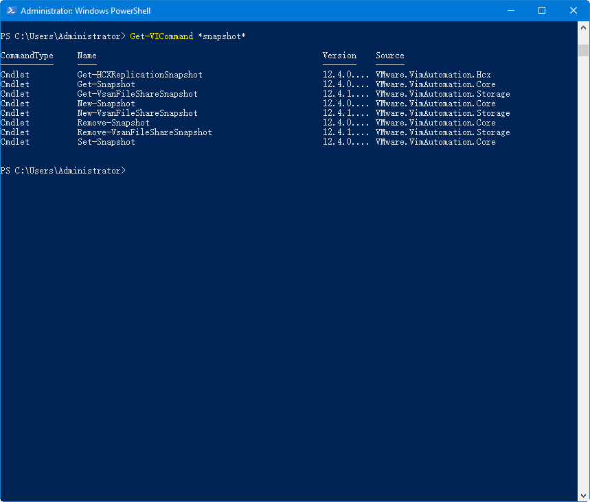 Pour récupérer toutes les commandes disponibles des modules VMware importés :