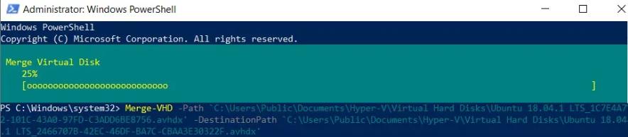 Vous pouvez maintenant exécuter cette applet de commande pour fusionner des instantanés Hyper-V.