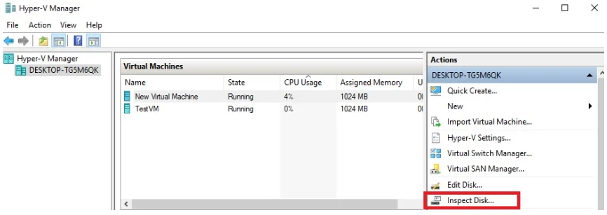 Étape 5 : Ouvrez ensuite le Gestionnaire Hyper-V, sélectionnez la VM, puis cliquez sur Modifier le disque dans l’onglet Actions.