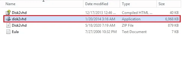 1. Téléchargez Disk2VHD, puis décompressez et exécutez-le sur la machine physique que vous souhaitez convertir.