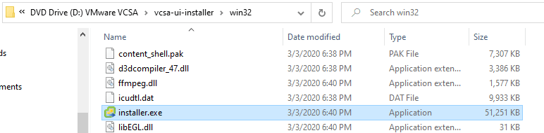 Note : Si vous utilisez Linux, allez dans vcsa-ui-installer\lin64 et exécutez installer.exe.