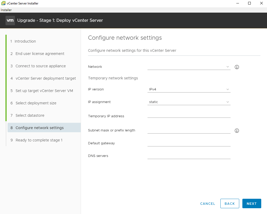 11. Configurez les paramètres réseau pour ce vCenter Server.