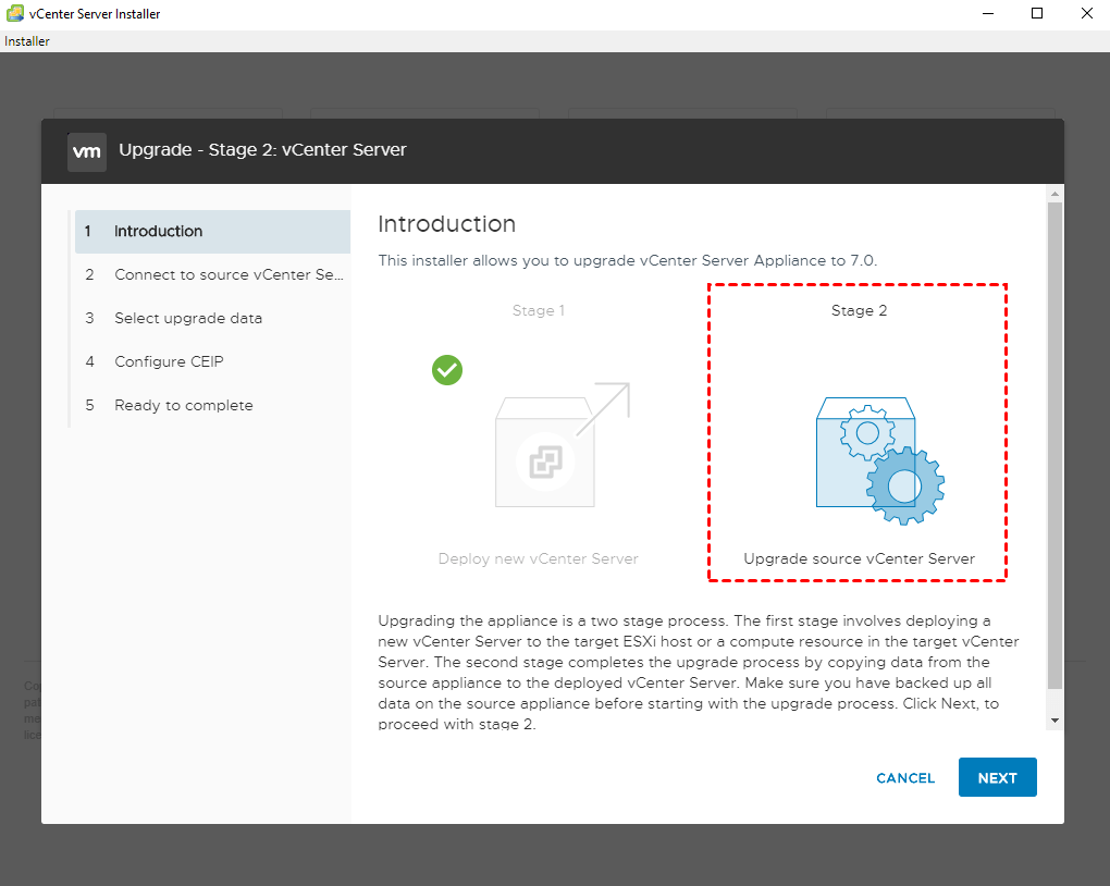 La présence de VCSA simplifie grandement le processus pour installer vCenter, mettre à jour vcenter, migrer et restaurer vCenter. Dans cette partie, je vais vous montrer les étapes détaillées de mise à jour vcenter appliance 6.7 to 7 via VCSA.