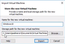 3. Indiquez un nom et un chemin de stockage local pour la nouvelle machine virtuelle. Cliquez sur Importer pour démarrer.