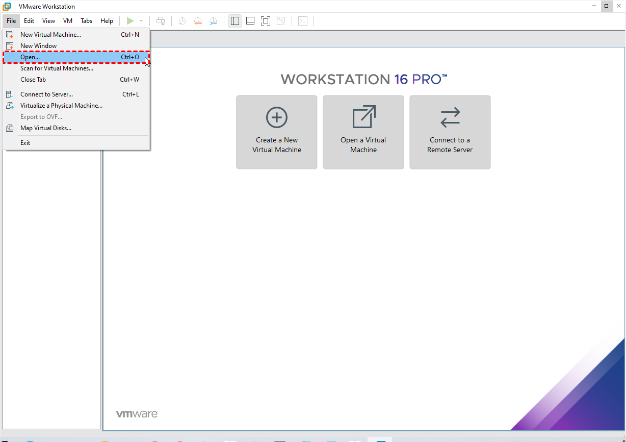 1. Lancez VMware Workstation, cliquez sur Fichier dans la barre d'outils et sélectionnez Ouvrir…
