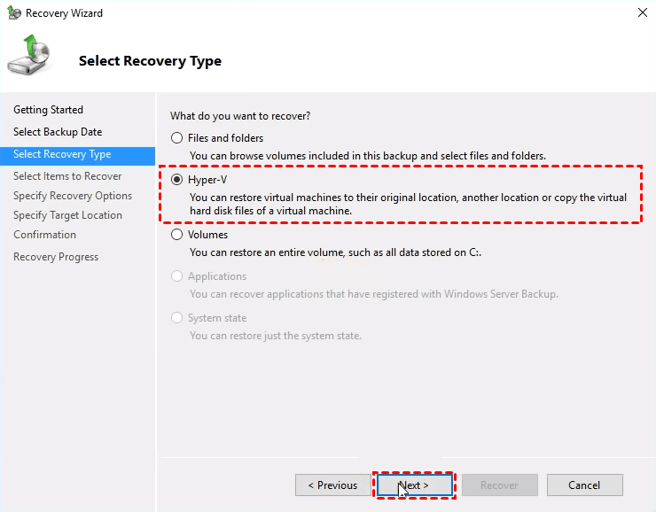 Depuis Windows Server 2012, WSB permet de sauvegarder des machines virtuelles Hyper-V individuelles au lieu de tout le serveur. Mais si vous avez créé une sauvegarde de machine virtuelle, comment restaurer une machine virtuelle Hyper-V à partir de la sauvegarde du serveur Windows ? Dans cet article, je vais vous présenter les étapes détaillées.