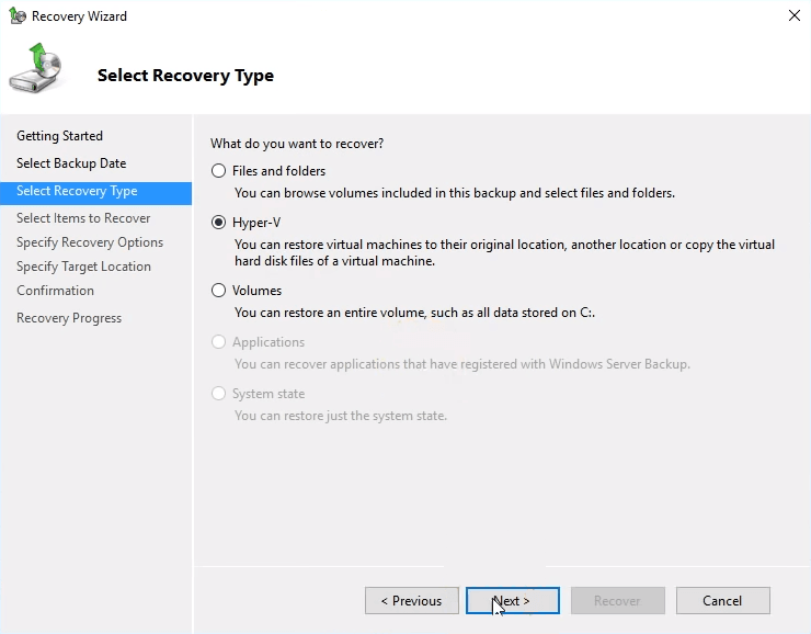 De plus, les logiciels tiers offrent souvent des étapes plus simples que la restauration d’une machine virtuelle à partir d’une sauvegarde du serveur Windows.