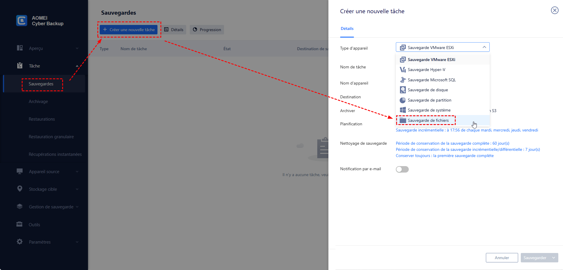 Étape 3. Configurer la tâche de sauvegarde de fichiers