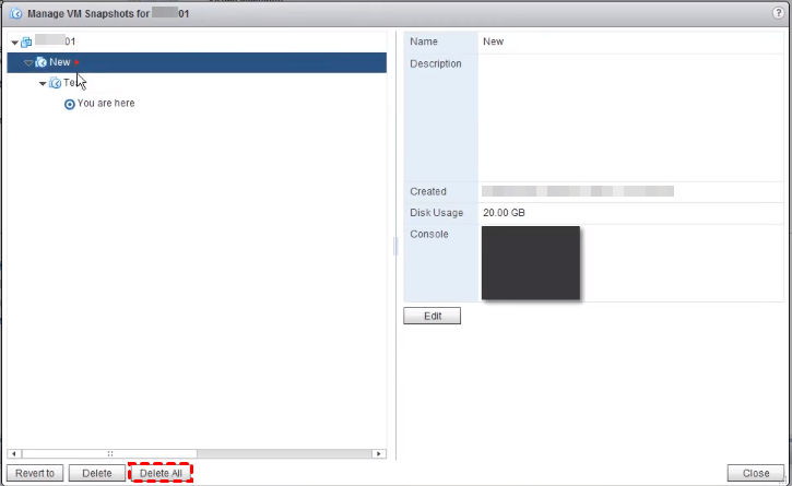 Cas 3. Comment supprimer un ou tous les clichés instantanés VMware