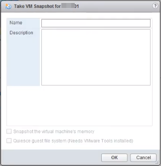 - Quiesce guest file system (needs VMware tools installed) : Met en pause l’état des processus en cours ou susceptibles de modifier les données sur le disque au moment de la prise du cliché, afin de garantir la cohérence. Les clichés mis en veille et les clichés de mémoire sont mutuellement exclusifs.