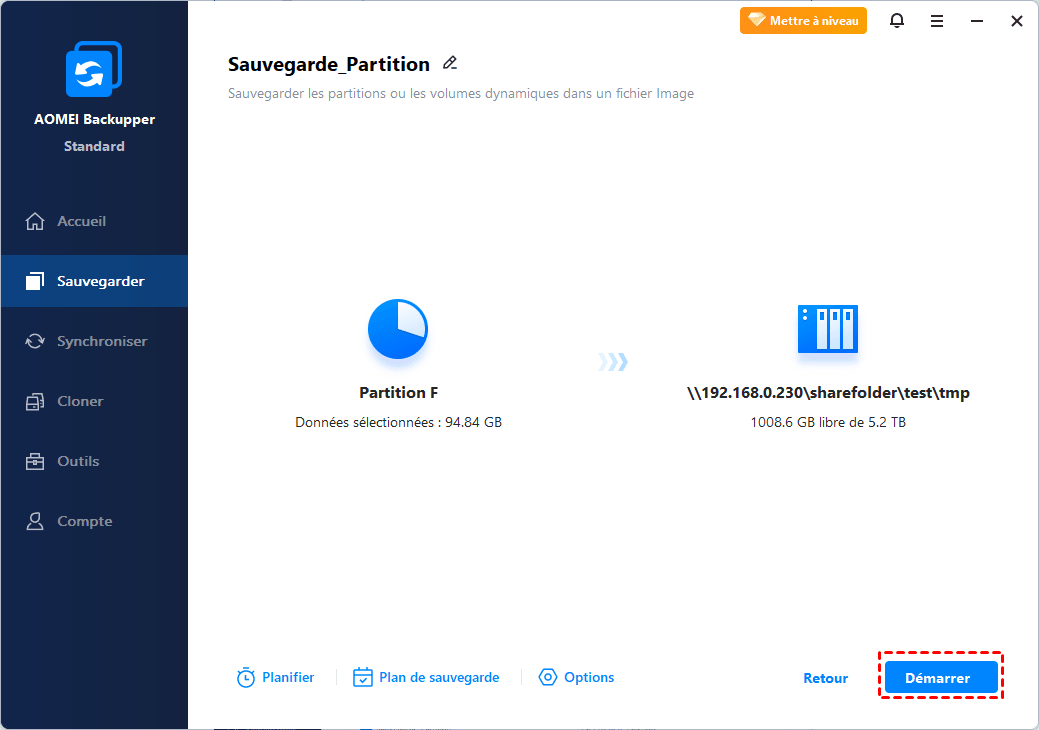 6. Sur l'interface de Sommaire des opérations, confirmez une dernière fois. Cliquez ensuite sur « Démarrer » pour sauvegarder sur le lecteur NAS.