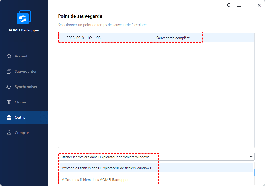 Étape 2 : Sélectionner l’image de sauvegarde à explorer