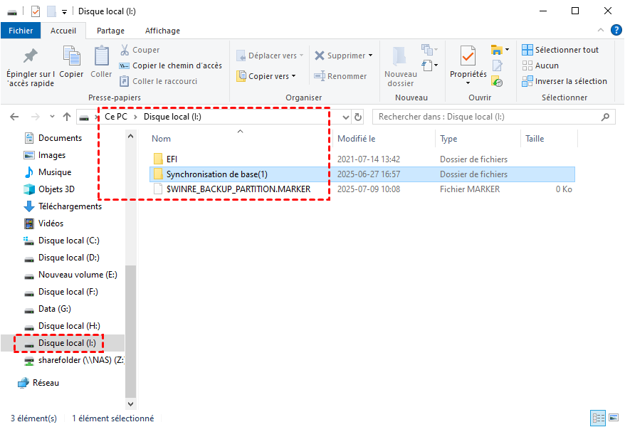 Une fois l'image montée, vous trouverez une lettre de lecteur virtuel I: dans l'Explorateur de fichiers Windows et pourrez directement afficher les données qu'elle contient.