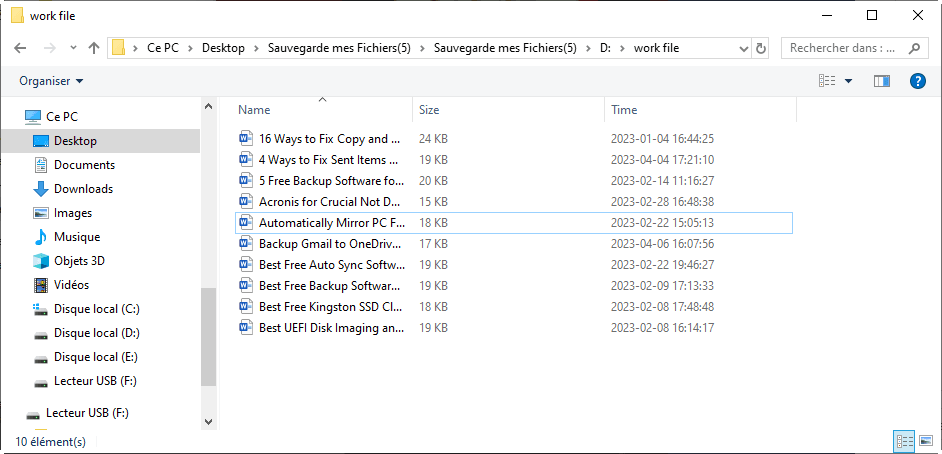 Conseils : Pour la sauvegarde de fichiers image .afi, veuillez supprimer manuellement le dossier monté si vous ne souhaitez pas y accéder.