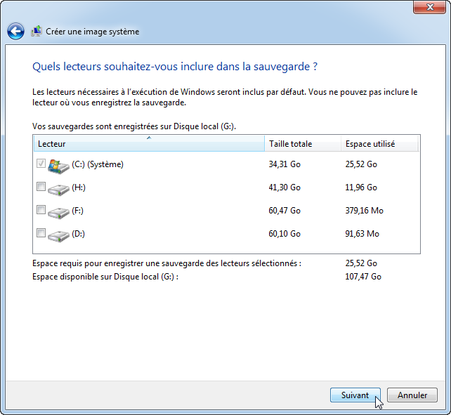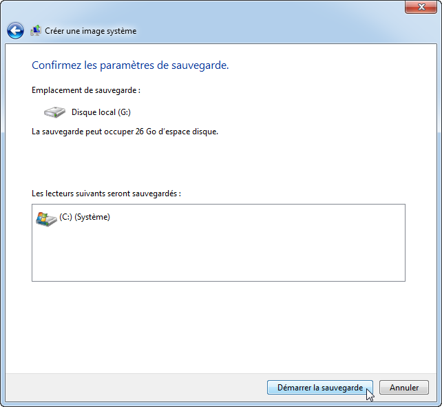 Pour créer une image système sur un disque dur externe, suivez les étapes ci-dessous :