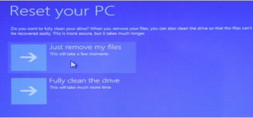 8. Choisissez "Supprimez mes fichiers"> "Réinitialiser".
