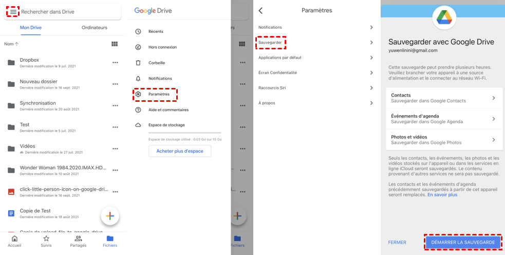 Méthode 2. Sauvegarder l'iPhone sur Google Drive depuis l'iPhone
