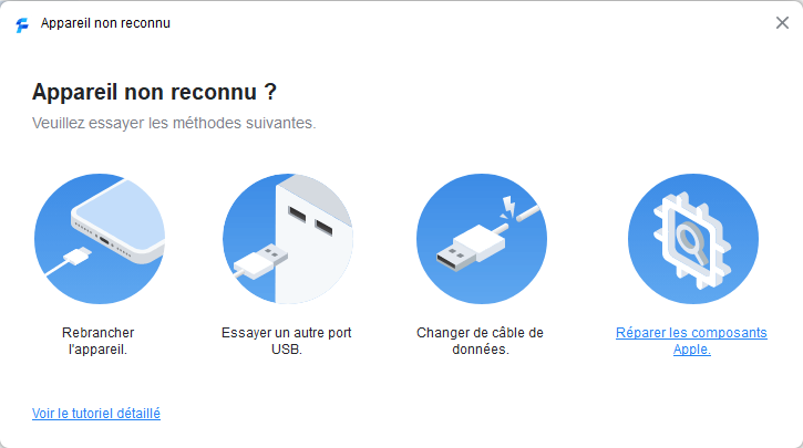 Si vous connectez votre iPhone, iPad ou iPod Touch à votre ordinateur par un câble USB, veuillez essayer les méthodes suivantes pour résoudre le problème :