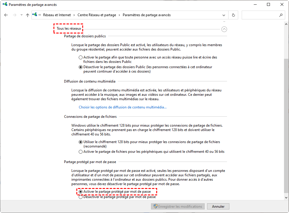 Vous pouvez essayer de désactiver la fonction de protection par mot de passe pour résoudre le problème de partage réseau Windows 10 qui ne fonctionne pas.