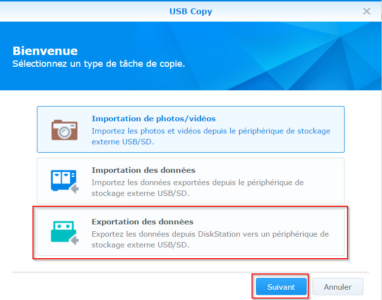 Synchroniser Synology avec un disque externe avec « USB Copy »