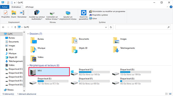 3. Sur votre PC, ouvrez Ce PC. Vous verrez apparaître votre Xiaomi sous forme de périphérique. Cliquez dessus pour accéder à la mémoire interne.