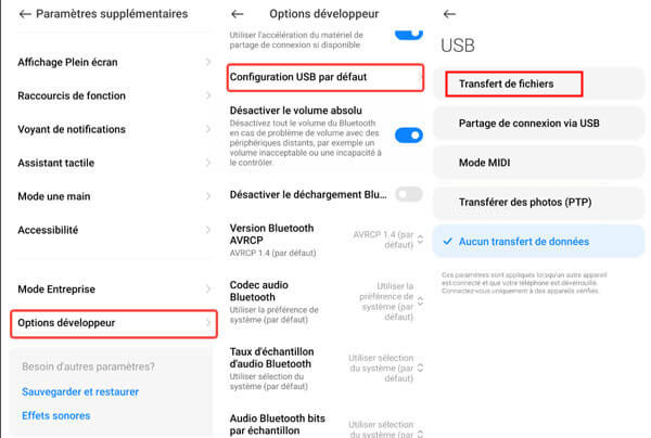 Solution 1 : Transférer via câble USB