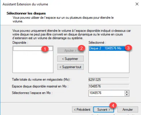 Méthode 2 : Étendre le lecteur cible s’il manque d’espace