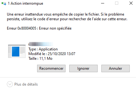 Une erreur inattendue vous empêche de copier le fichier ? Pourquoi ?
