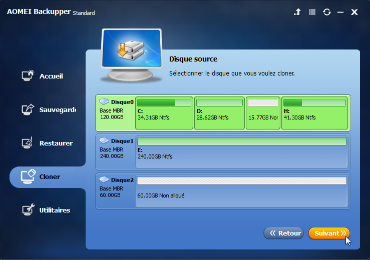 - Il fournit 3 solutions de clonage différentes : Clonage de disque, Clonage de partition et Clonage du système.