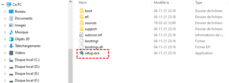 Étape 1. Vous pouvez connecter la clé USB d'installation créée précédemment et la sélectionner dans l'explorateur de fichiers.