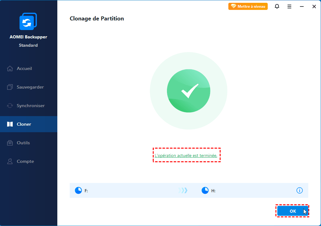 AOMEI Backupper Standard est un logiciel de clonage gratuit pour les ordinateurs de bureau et ordinateurs portables. Il permet de cloner une partition en toute sécurité. Grâce à cette fonction, vous pouvez facilement cloner la partition vers une autre partition sans interrompre les programmes en cours d'exécution.