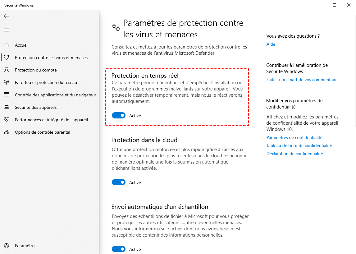 Méthode 3. Désactiver la protection en temps réel