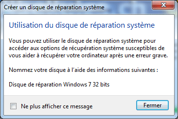 6. Quand le processus se termine, une boîte de dialogue vous invite. Lisez les informations et cliquez sur Fermer.