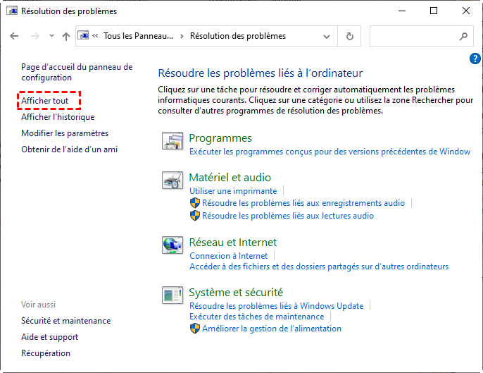 - Cliquez sur Afficher tout dans le volet de gauche.