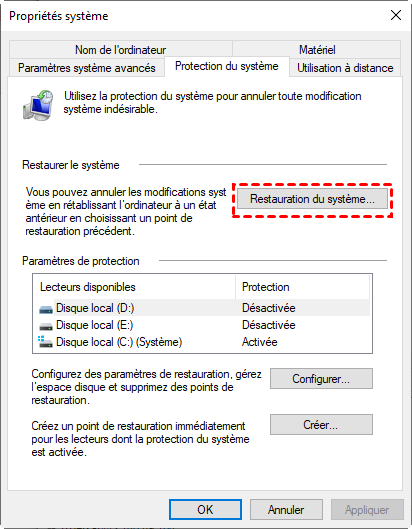 Si aucune des solutions précédentes ne fonctionne, une réparation de Windows peut parfois résoudre le problème, vous pouvez essayer d'effectuer une restauration de système.