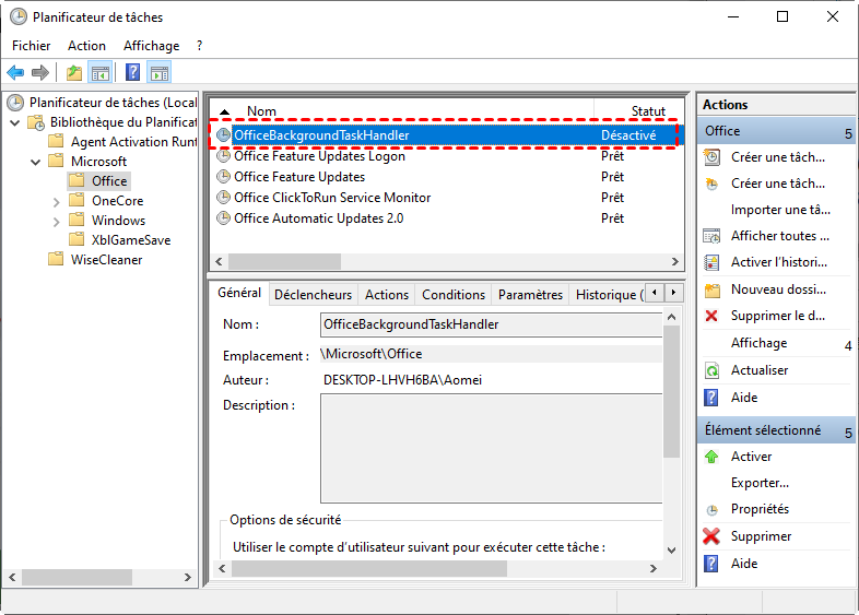 - Trouvez OfficeBackgroundTaskHandler dans la fenêtre de droite, faites un clic droit dessus, puis désactivez la tâche dans le menu déroulant.