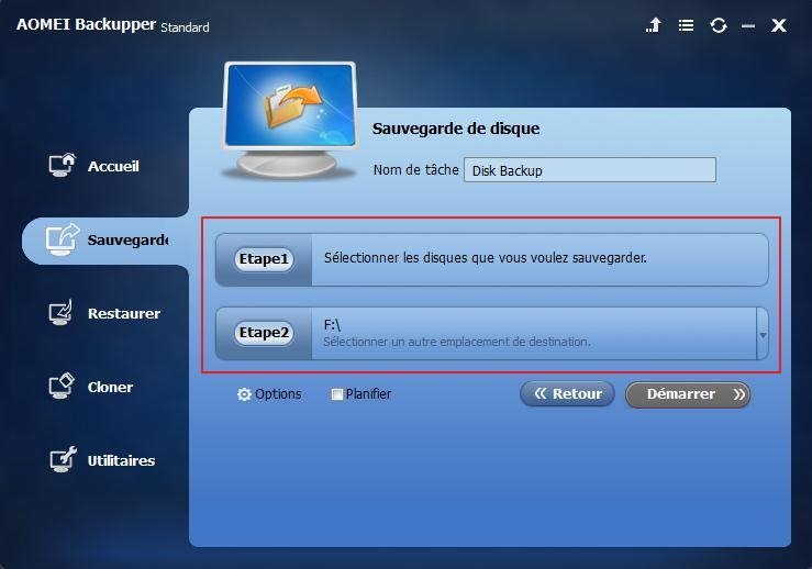 Avant de commencer, préparez un disque dur externe ou un emplacement réseau pour stocker le fichier ghost de disque dur. Voici les étapes détaillées pour faire un disque dur ghost dans Windows 10 avec AOMEI Backupper :