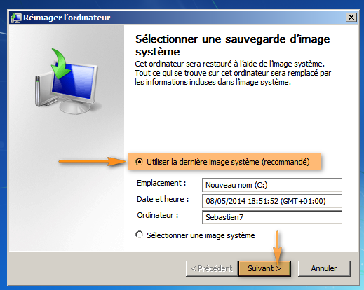 Comment restaurer cette sauvegarde d'image système ?