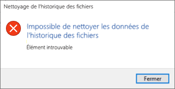 Parfois, les utilisateurs peuvent signaler l'erreur « Élément introuvable de l'historique des fichiers » ou « Échec du nettoyage de l'historique des fichiers avec l'erreur 80040507 ou 800405ff », etc. Voici quelques informations à leur sujet, avec les causes possibles et les solutions correspondantes :