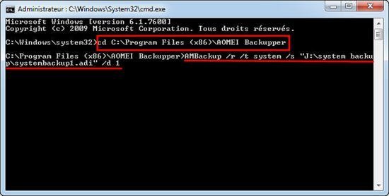 Pour restaurer Windows avec AOMEI Backupper, tapez les commandes spécifiques à AOMEI |