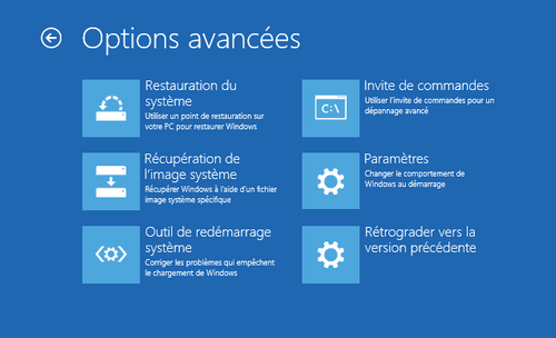 Cet outil dispose de son environnement de récupération, vous pouvez y accéder durant le démarrage avec les touches mentionnées ci-dessus. Ce qui vous épargne aussi l'effort de créer un support bootable.
