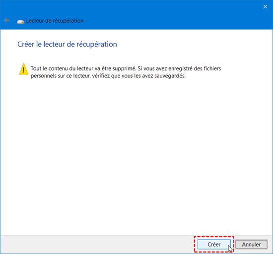 - Créer un disque de récupération Windows 10 avec la fonction de Lecteur de récupération.