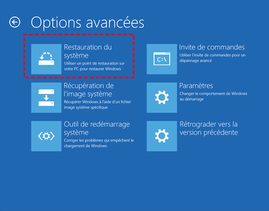 Étape 2. Sélectionnez Options avancées > Restauration du système.