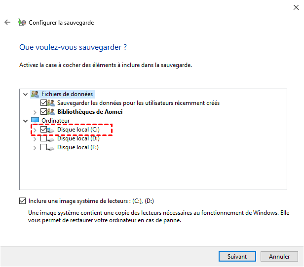 - Vous pouvez utiliser l'option Sauvegarde de système pour sauvegarder uniquement le système d'exploitation, par exemple, sauvegarder l'ordinateur sur une clé USB.