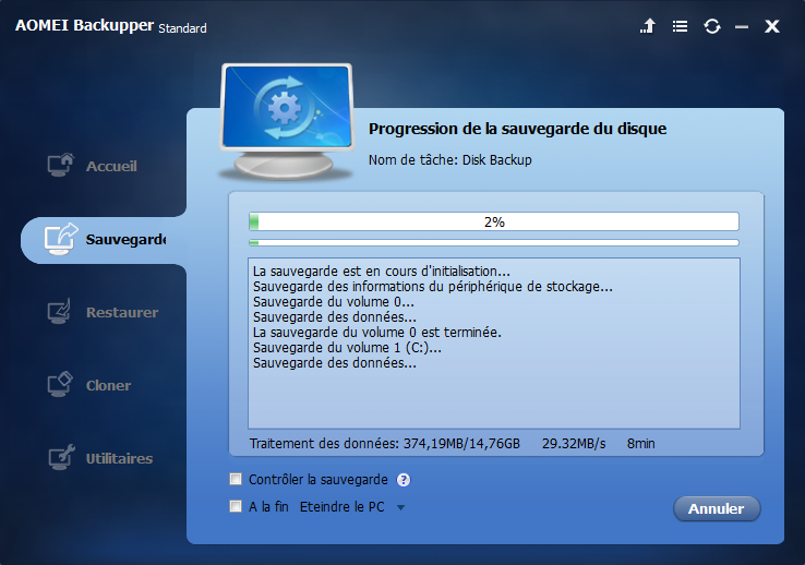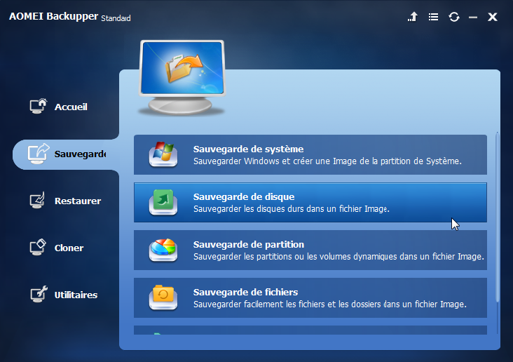 Logiciel de sauvegarde gratuit Windows 10 - AOMEI Backupper