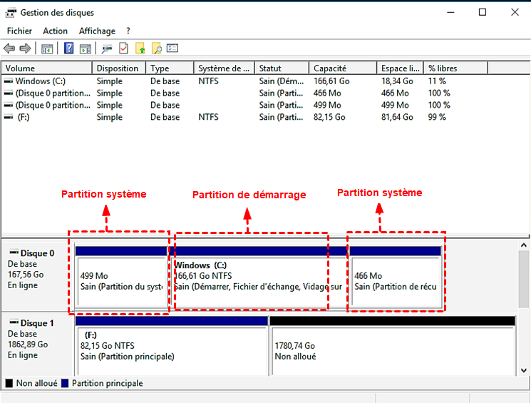 De cette façon, s'il y a une panne système et le démarrage échoue, vous pouvez restaurer les fichiers système, puis, vous pouvez démarrer le système sans réinstaller le système et sans perdre de données. Alors, comment sauvegarder le disque C Windows 10 ? Avant cela, vous devez connaître la différence entre la partition de démarrage et la partition système.