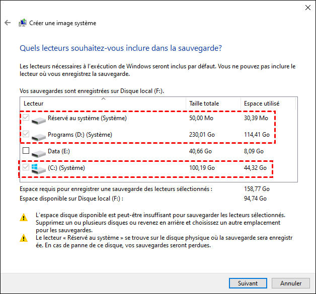 Sauvegarder le lecteur C Windows 10 avec Wbadmin